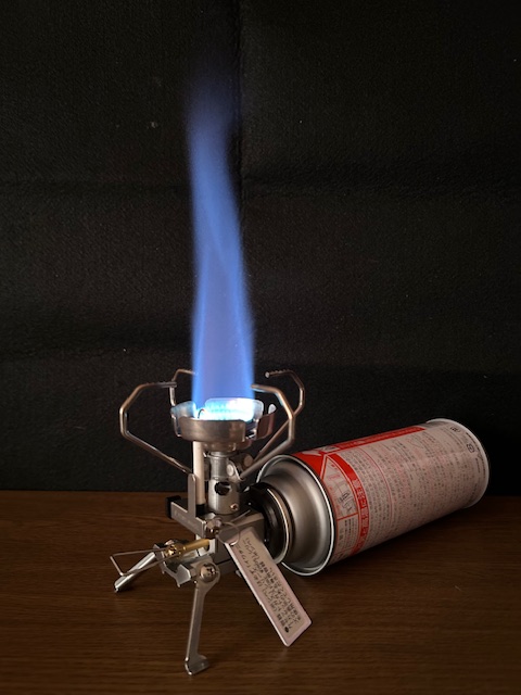 マイクロキャンプストーブを全開にした時の炎の状態です。